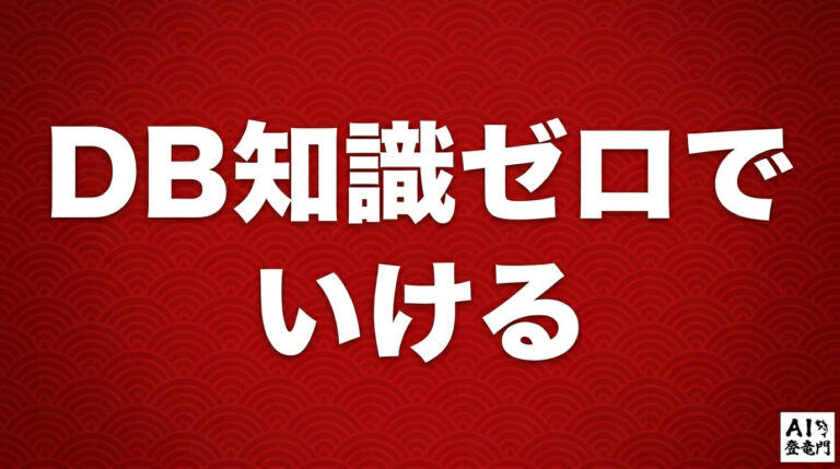 「データベースって難しそう」——受講者との初回面談で、8割以上がこう口にする。テーブル設計、SQL、リレーション。確かに用語だけ聞くと敷居が高い。だが、バイブコーディングでデータベースを扱う分には、これらを自分で書く必要…